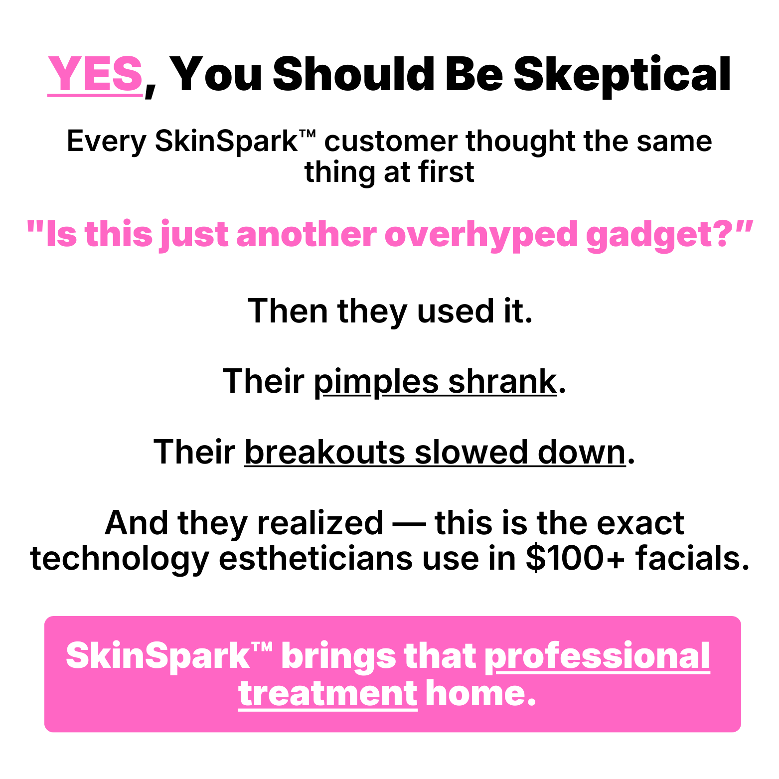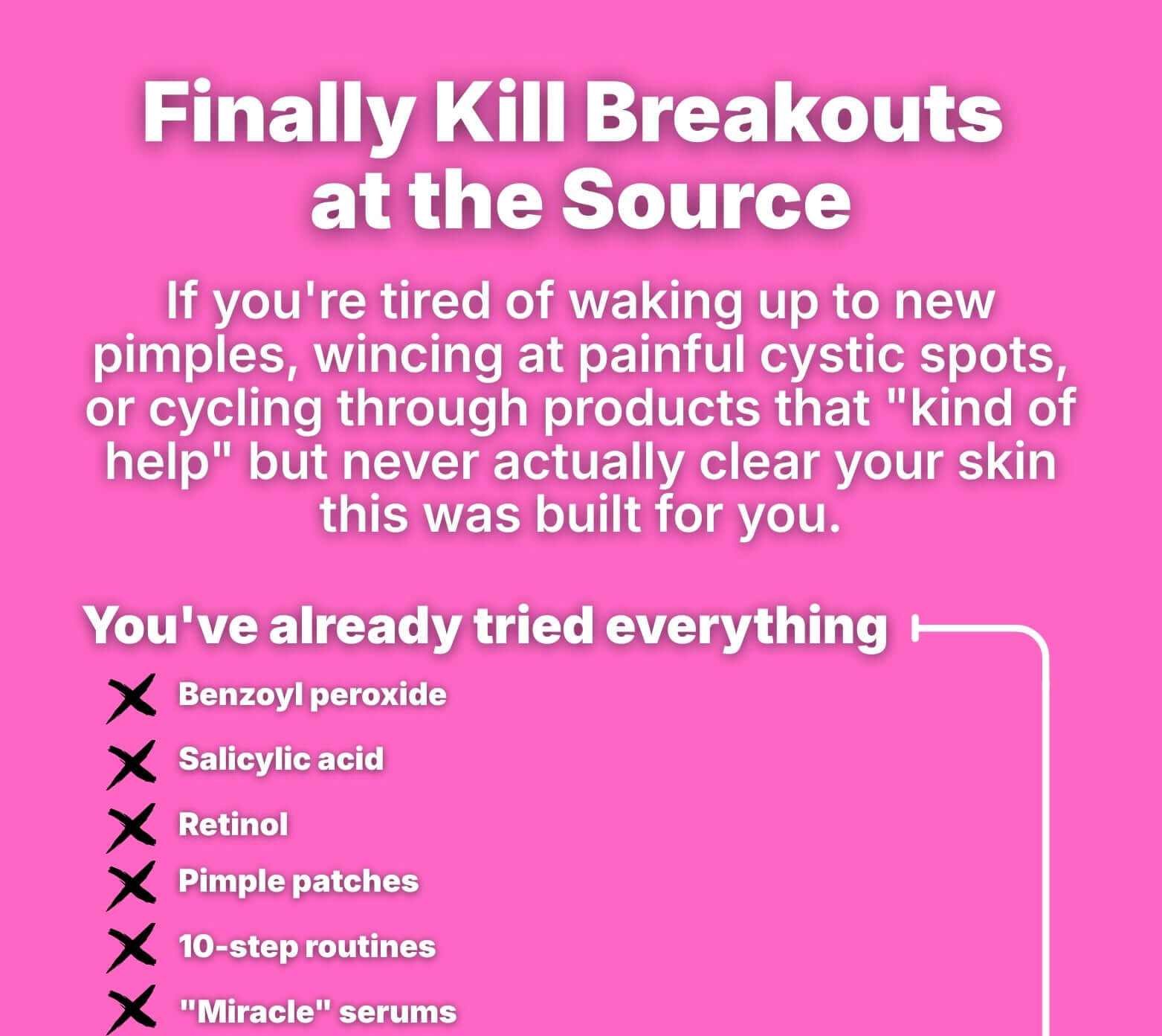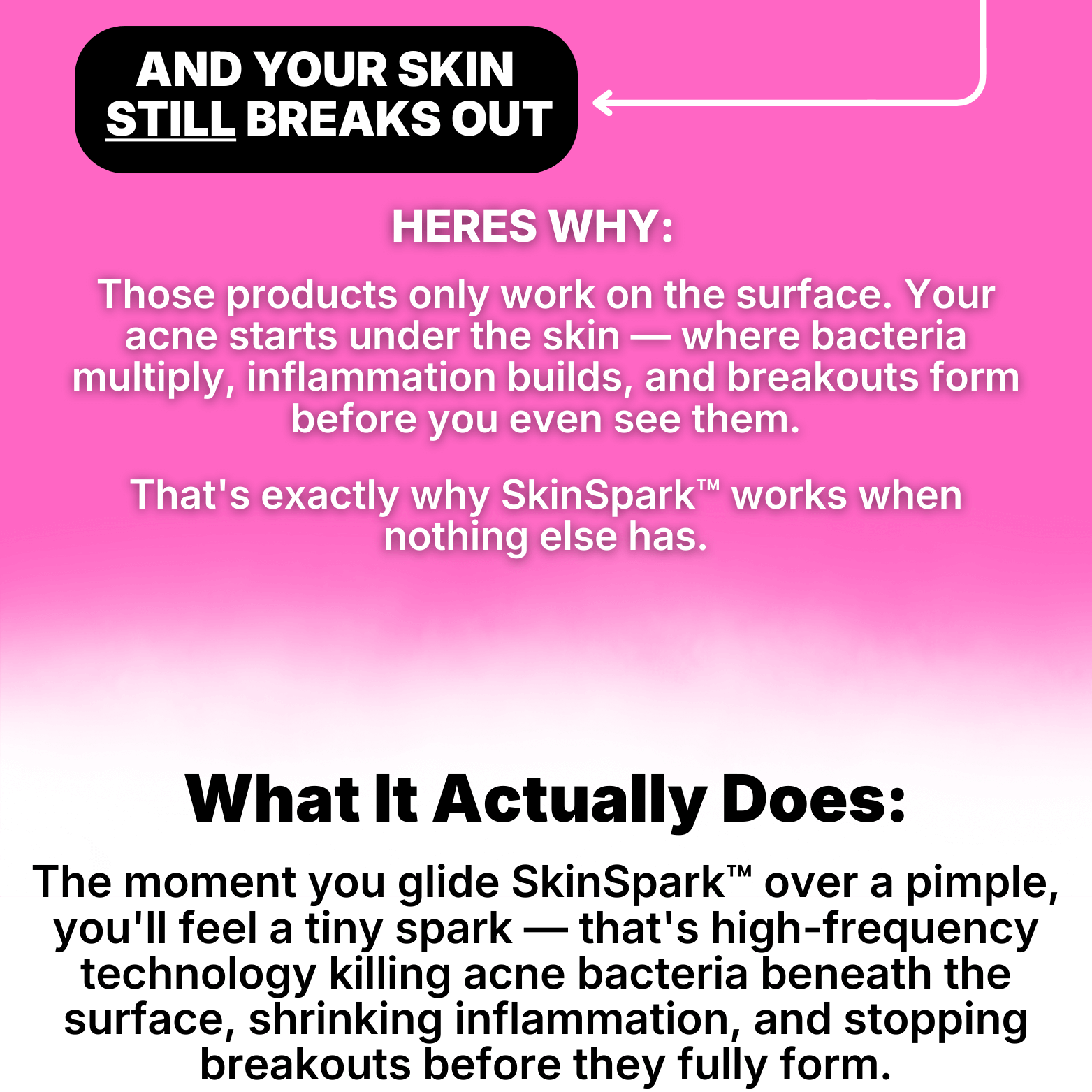 Because creams only treat the surface — SkinSpark™ treats the root cause (bacteria + inflammation) underneath.