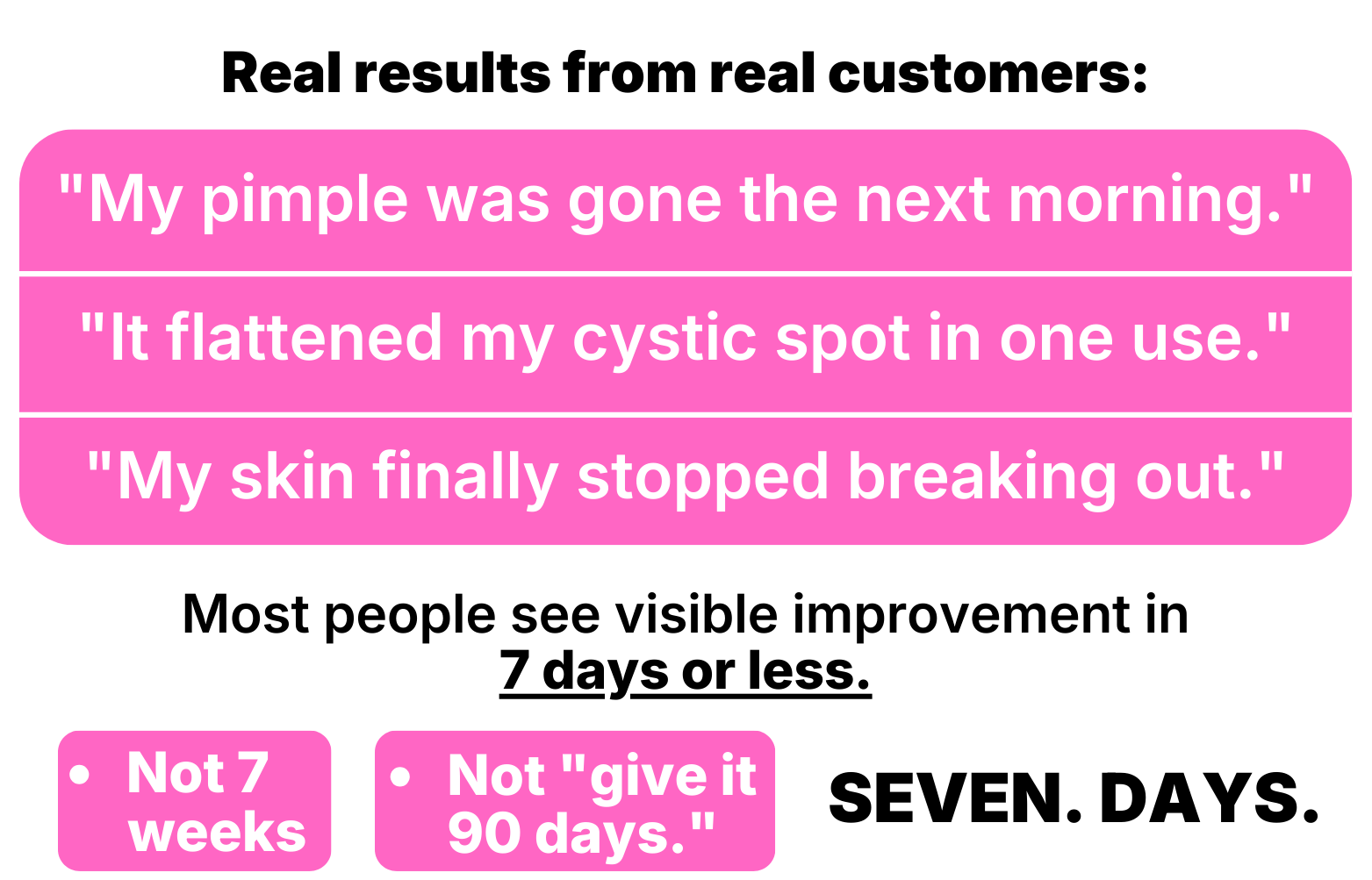 Most users see improvement in 1–3 uses. Faster healing, less swelling, less redness.